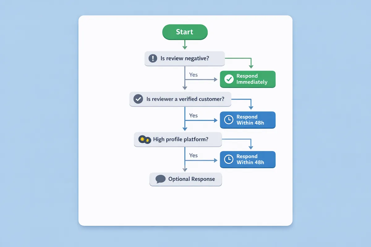 Speed matters more for negative reviews. A 1-star review sitting unanswered for a week looks worse than a 5-star without a response.